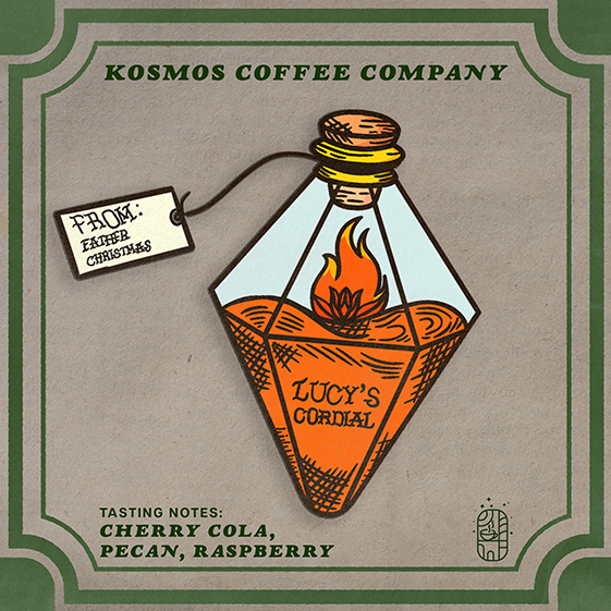 Celebrate the joy of Christmas this year with our new seasonal coffee, Lucy's Cordial. Upon brewing, this coffee has a sweet smelling aroma with tasting notes of cherry cola, pecan, and raspberry. It is a medium roasted coffee sourced from the Tarrazu region of Costa Rica. Fresh off the brew will showcase more sweet, cherry, and winey type notes, while a more nutty and raspberry type taste becomes more prominent as the brew cools.